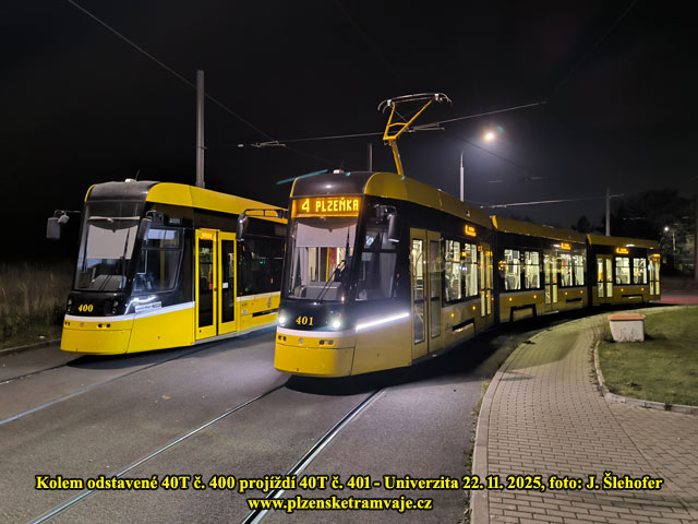 Blíží se konec výluky na Košutku. Nové kolejnice již byly zaasfaltovány a probíhají dokončovací práce jako např. zalévání spár. Ve čtvrtek 27. 11. 2025 kolem deváté hodiny proběhla na Košutce zkušební jízda. Vůz 40T č. 399 sem dojel přes "Kaliforňan" protisměrnou kolejí a po zkušební jízdě se vrátil přes "Kaliforňan" zase zpět.