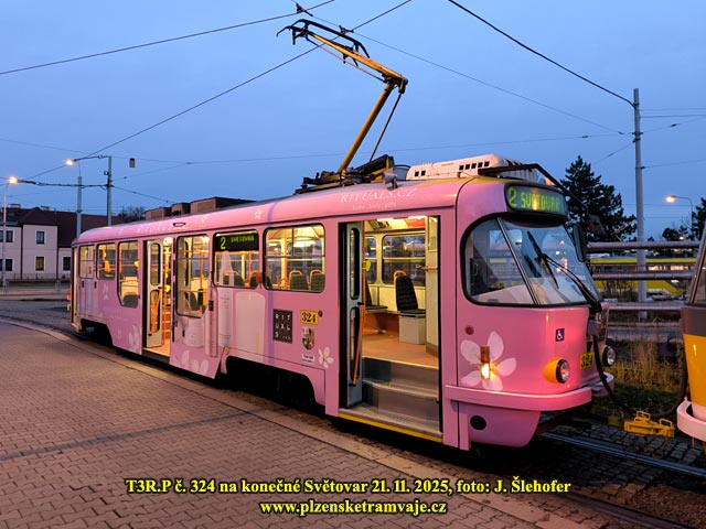 Na voze T3R.PLF č. 324, který je obvykle řazen jako zadní vůz soupravy 323+324, je od začátku listopadu 2025 celovozová reklama na kosmetiku Rituals. Jak je ze snímků patrné, vůz je ve světlém růžovém polepu.