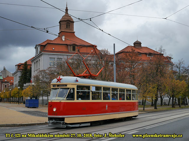 Následující video zachycuje historický vůz T1 č. 121 ještě v modrém nátěru v ulicích Plzně při objednaných jízdách v roce 2008 a 2009.
