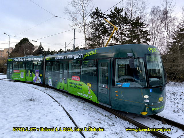 Od 1. 1. 2026 je v provozu vůz EVO2 č. 377 v nové podobě s reklamou Epet. Je ve tmavším provedení, než předchozí verze a znovu se zde setkáme i s fialovými opičkami.
