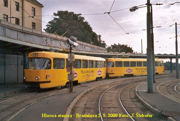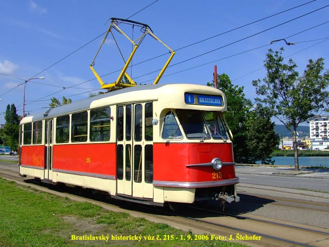 Tyto fotky z roku 2000 pochází z centra Bratislavy, kromě té vpravo, která je z konečné Zlaté Piesky. Následuje pár zajímavých fotografií z léta 2006. Zdejší historický vůz T2 považuji za nejlepší dochovanou Tédvojku vůbec. Podobá se nejvíce plzeňským vozům, které dojezdily v původní podobě s jedním reflektorem a vousy. Pražský muzejní vůz ve Střešovicích je sice také nádherný, ale bohužel se s ním díky tyčovému sběrači příliš často v ulicích nesetkáme.