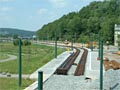 pak odbočkou kolem vozovny k železniční zastávce Zwötzen. Na fotografii vlevo je původní, nyní již zrušená konečná Zwötzen, ještě v roce 2003.