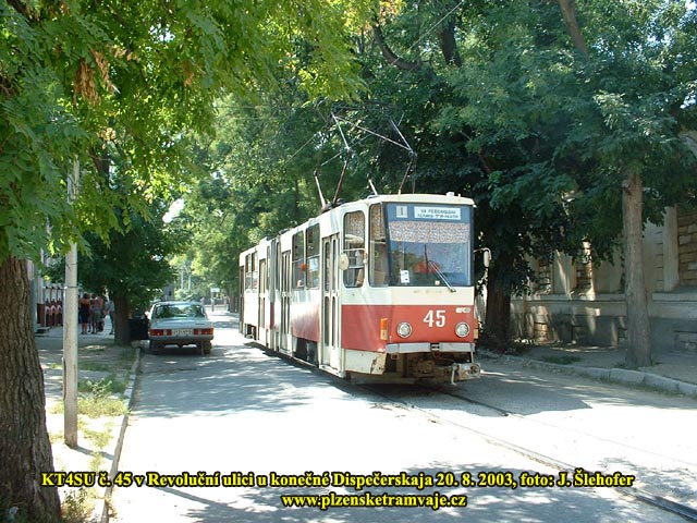 Na páteřní tramvajové lince č. 1 v trase Dispečerskaja - Sputnik II jsou nasazovány české vozy KT4. Její nejnovější úsek do sídliště Sputnik II je dvoukolejný a