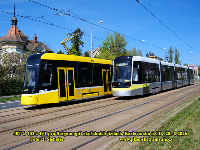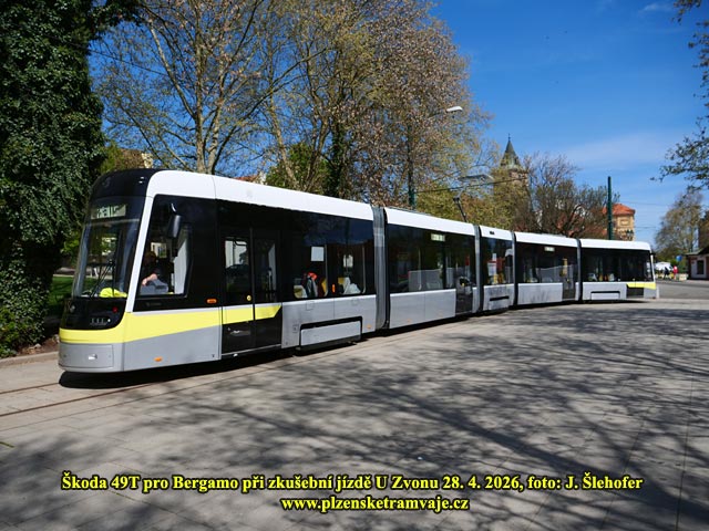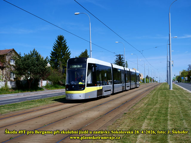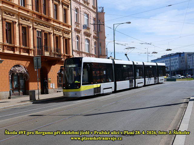 Tramvaj Škoda 49T V ulicích Plzně se objevuje další zkušební tramvaj určená pro jiného provozovatele. Tramvaje Forcity Classic, nebo také 49T, dodá místní výrobce v počtu deseti kusů pro italské město Bergamo. Zde mají být provozovány na nové lince T2, jejíž trasa povede po tělese zrušené železnice. Nejde tak o klasickou městskou tramvajovou trať, ale spíše o příměstskou rychlodráhu. Délka linky bude asi 12 km a bude mít asi 17 zastávek z nichž tři budou sdílené s již provozovanou linkou T1. Na lince T1 jsou v provozu tramvaje Sirio výrobce Ansaldo Breda. Tramvaj Škoda 49T je pětičlánkový vůz o délce 33 metrů a měl by mít kapacitu 281 lidí. Vůz má tři pevné podvozky a maximální rychlost 70km/hod. Vzhledem k tomu, že tramvaje budou provozovány na trati přestavěné z železnice, tedy zřejmě s oblouky o větších poloměrech, neměly by být pevné podvozky problémem.