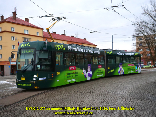 Od 1. 1. 2026 je v provozu vůz EVO2 č. 377 v nové podobě s reklamou Epet. Je ve tmavším provedení, než předchozí verze a znovu se zde setkáme i s fialovými opičkami.