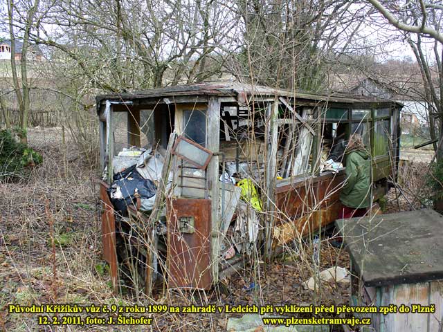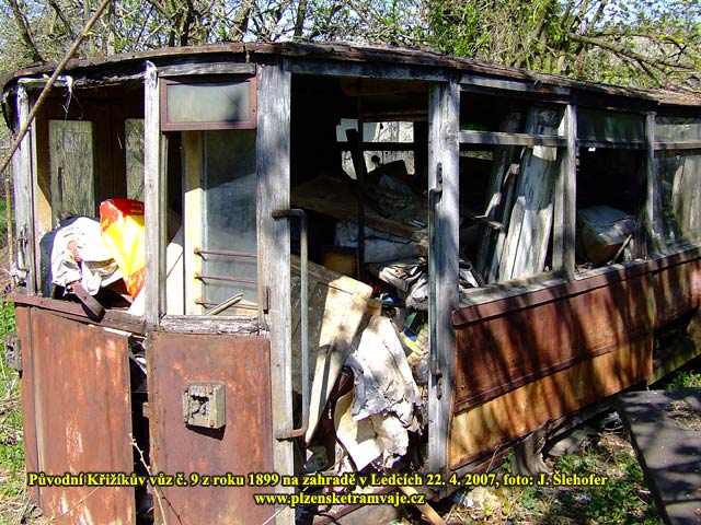 Skříně vozů odkoupil tehdejší zaměstananec DP a převezl na svůj pozemek do Ledců u Plzně. Zde sloužil vůz č. 9 jako včelín, později oba vozy už spíše jen jako kůlny.