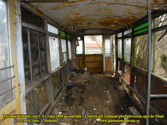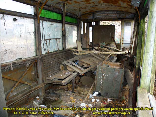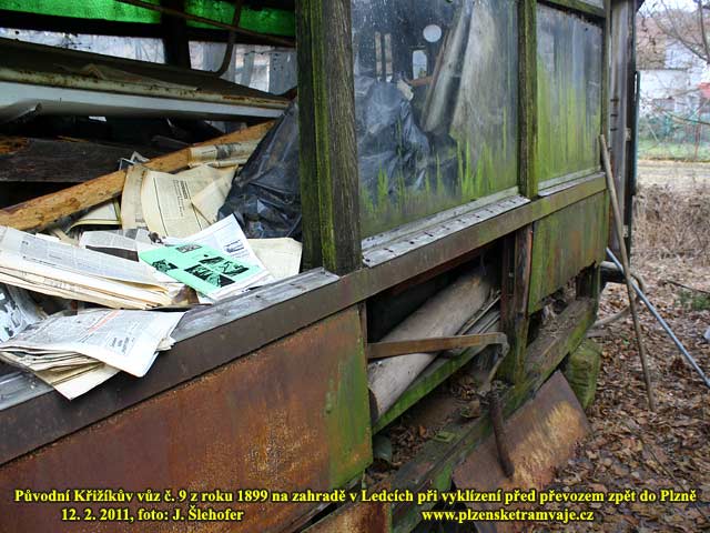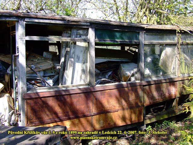 Podrobnějí jsem si pak vozy prohlédl a nafotografoval v roce 2007, kdy jsem zde zastihl také jejich majitele. Skříň vozu č. 9 je zachovalejší,