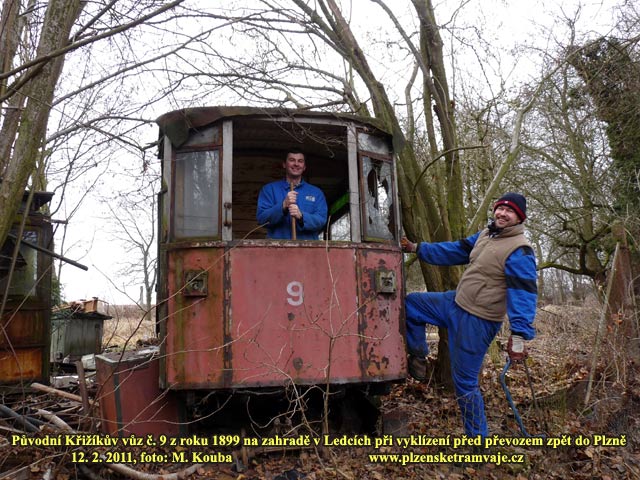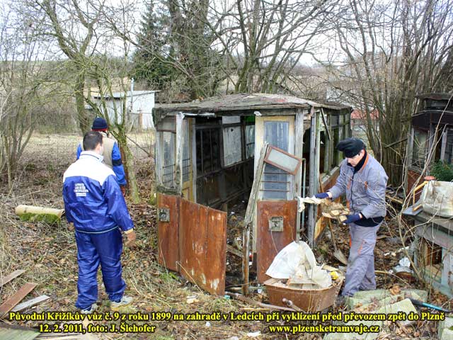 Původní majitel umřel a v roce 2011 se podařilo domluvit odvoz vozů zpět do Plzně. Oba vozy však byly plné a bylo je potřeba vyklidit. V jeden víkendový den v únoru 2011