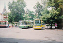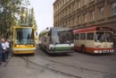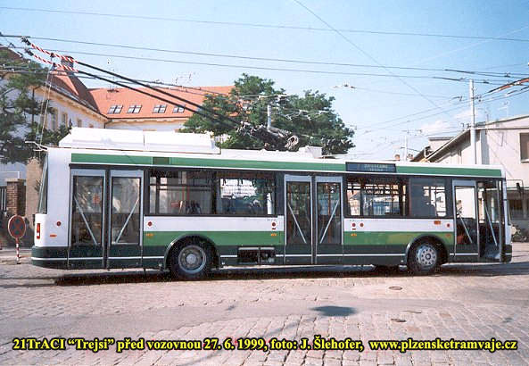 Astra o víkendu ale nejezdila jen jedna, ale spíše dvě. První nevydržela a tak byla v neděli dopoledne vyměněna za jinou. Zaslechl jsem, že selhalo chlazení. Vůbec je zajímavé, že plzeňský dopravní podnik měl v roce 1999 čtyři Astry, ale většinou nikdy víc než dvě najednou nebyly nasazovány do provozu. Na této fotografii můžeme vidět Astru s prototypem nového nízkopodlažního trolejbusu Tr 21 ACI s asynchronní výzbrojí a nouzovým dieselovým agregátem.