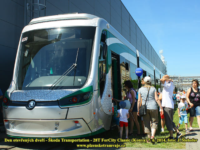 Den otevřených dveří - Škoda 28T Konya - 7. 6. 2014 Den otevřených dveří  - Škoda 28T Konya - 7. 6. 2014 Náročné fotografy pak trochu mrzelo, že vystavené tramvaje stály ve stínu haly a tak se nedaly přiliš reprezentativně vyfotit. Tyto dva obrázky přináší 28T pro turecké město Konya.