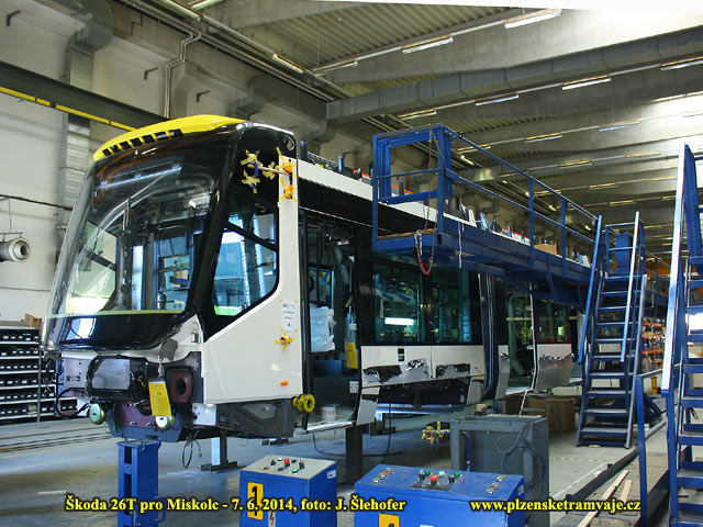 Den otevřených dveří - Škoda 26T pro Miskolc - 7. 6. 2014 Den otevřených dveří - Škoda 26T pro Miskolc - 7. 6. 2014 Bylo možné nahlédnout do některých výrobních hal tramvají, avšak pouze přes otevřená vrata. Na snímcích jsou zachycené nové tramvaje Škoda 26T pro Miskolc.