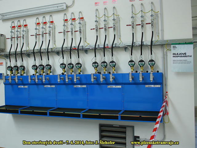 Den otevřených dveří - panely o historii MHD - 7. 6. 2014 Den otevřených dveří - olejové hospodářství - 7. 6. 2014 V jedné z hal byly také panely popisující historii městské hromadné dopravy, které jsme měli možnost již vidět na výstavě v mázhausu radnice.