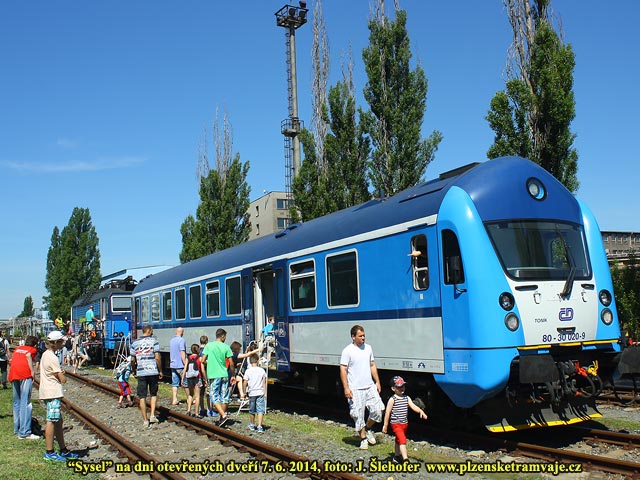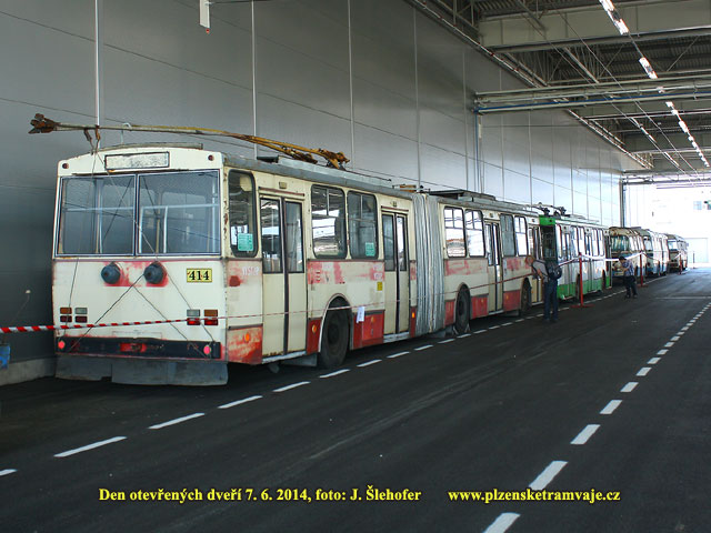 Den otevřených dveří - ŠM 11 - 7. 6. 2014 Den otevřených dveří - 14Tr č. 414 - 7. 6. 2014 Nemalý zájem budily také vozy z depozitáře dopravního podniku, které na svojí renovaci ještě čekají. Mezi nimi zejména Karosa ŠM 11, či vlečný vůz Jelcz. Nechyběl ani prototyp kloubového trolejbusu Škoda 15Tr č. 414.