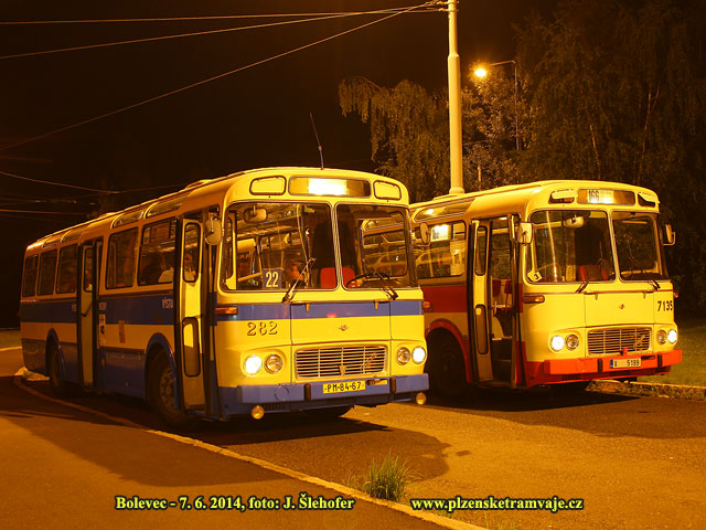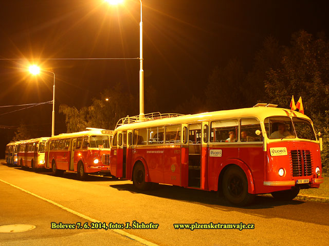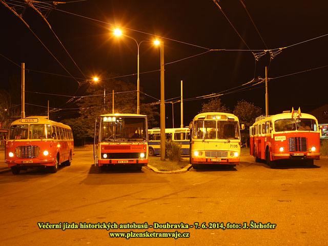 Divnolidi se scházejí před večerní jízdou v Cukrovarské ulici 7. 6. 2014 Večerní jízda historických autobusů - konečná Doubravka 7. 6. 2014 Na jízdu vyjely tyto stroje: Škoda 706 RO (DP Praha), Škoda 706 RTO (PMDP), Karosa ŠM 11 (DP Praha), Karosa B 731 (PMDP) a neoficiálně se přidala také Karosa ŠL 11 (ŠKODA - BUS klub). První fotozastávkou byla smyčka Čechurov. Následovala Doubravka a Bolevec. Na všech zastávkách probíhalo za velkého zájmu hromadné focení autobusů. Jízda byla ukončena na náměstí Republiky asi ve 23:40, tedy krátce před posledním tramvajovým křižováním.