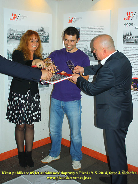 Vernisáž výstavy Výstavy 115 let MHD v Plzni  19. 5. 2014 Křest publikace 80. let autobusové dopravy  19. 5. 2014 Oficiální vernisáž pak proběhla v pondělí 19. 5. 2014 současně se křtem publikace 85 let autobusové dopravy v Plzni. Tu spolu s autorem Ondřejem Liškou pokřtil ředitel PMDP Michal Kraus, zástupci vydavatelství a sponzora.