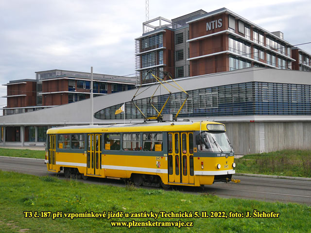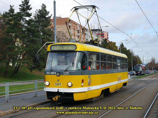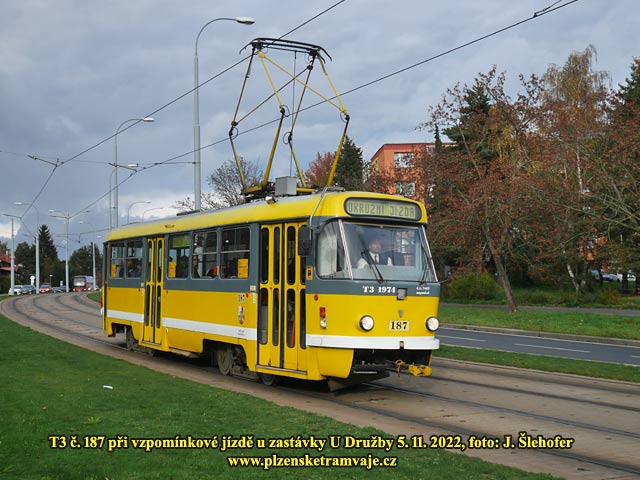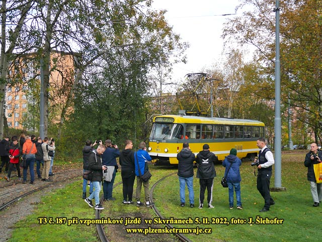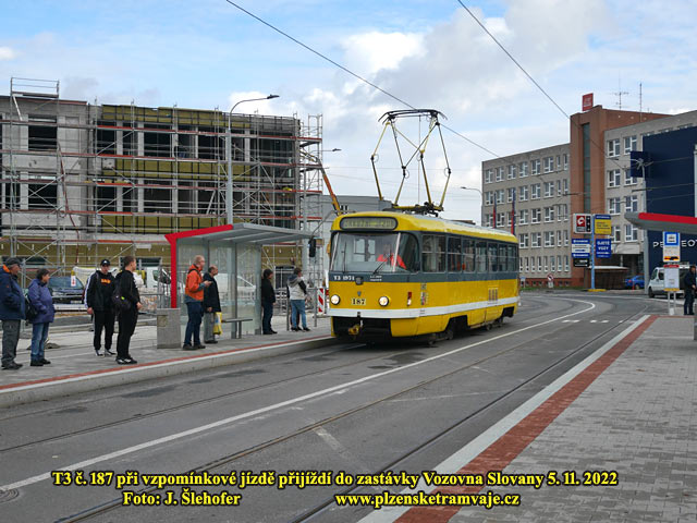 V sobotu 5. 11. 2022 tedy vyjíždí vůz T3 č. 187 ve 13:00 ze zastávky vozovna Slovany a vyráží na okružní jízdu. Jeho trase vedla přes zastávku U Zvonu do Skvrňan,