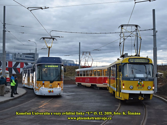 V provozu se vůz č. 187 poprvé objevil na zvláštní lince "U" při otevírání tramvajové trati k Univerzitě 15. 12. 2019. Protože bylo zapotřebí obousměrné soupravy,