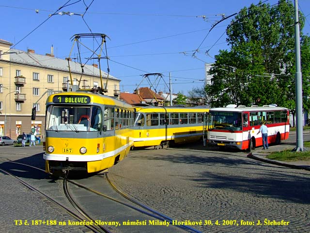 Když byl její zadní vůz (č. 188) v létě 2003 odvezen do areálu firmy Datatechnik v Třemošné, kde podstoupí VP, objevuje se přední vůz (č. 187) sólo na lince č. 1. Je to