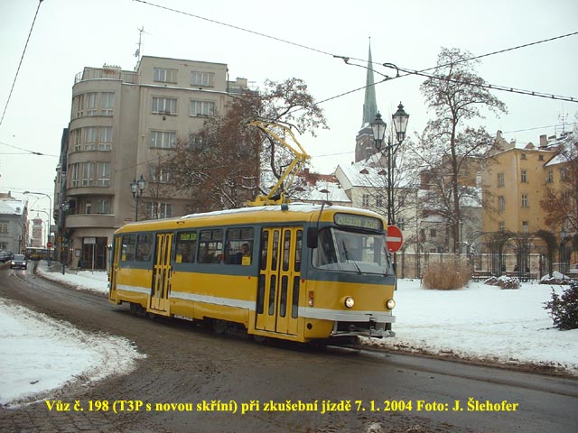 v Cukrovarské ulici. Vozy obdržely elektrickou výzbroj Progress a i další prvky shodné s plzeňskými vozy T3P