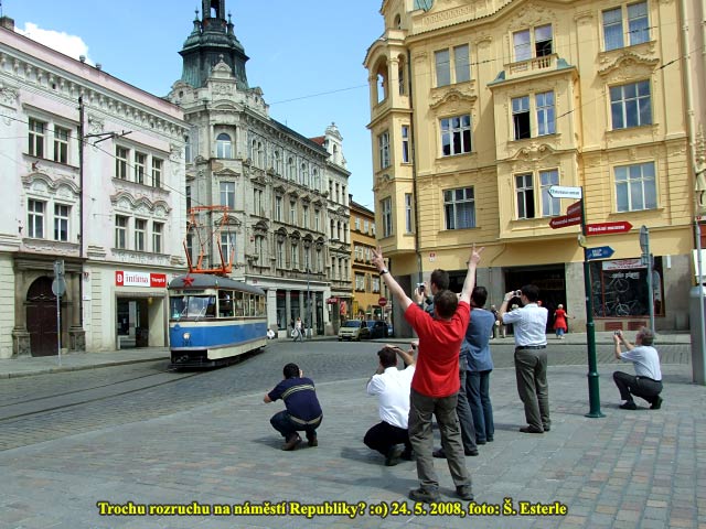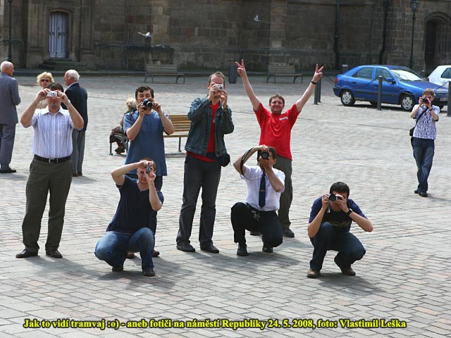 Dav fotičů na náměstí Republiky zblbnul nejednoho turistu, který si pak také pořídil snímek 24. 5. 2008,