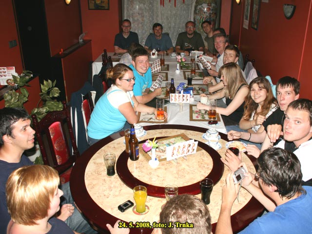 foto: J. Trnka Večerní hospoding - 24. 5. 2008, foto: J. Trnka Ve večerních hodinách se pokračovalo v pro mnohé zažité občerstvovně. Zde se přidalo i několik dalších přátel, kteří během dne byli na autobusové akci v Lešanech. Večer byl ukončen v užším kolektivu nočním výletem na osvětlený hrad Radyně.