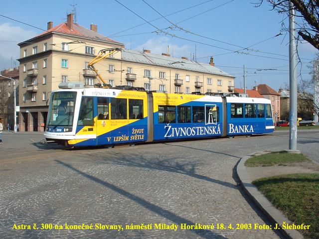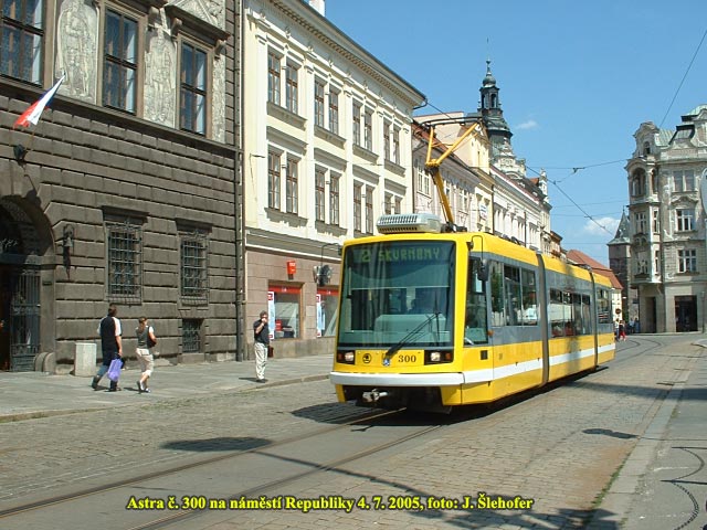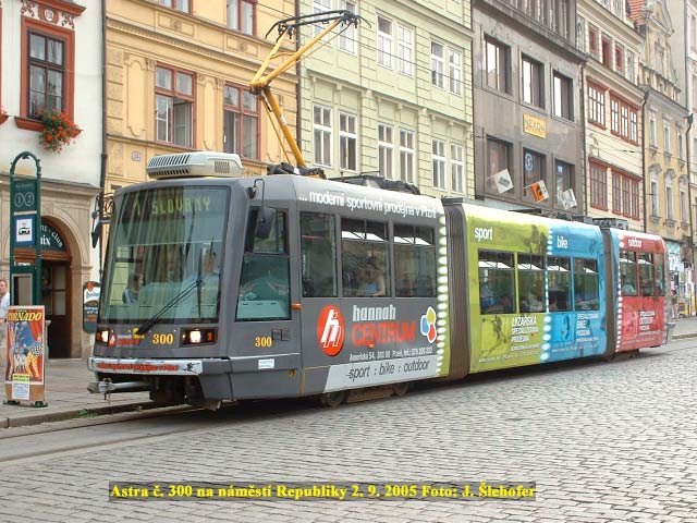 Astra 300 Prototyp tramvaje Škoda LTM 10.08 byl v plzeňské Škodovce vyroben v červnu 1997. Bližší informace o tomto typu tramvají najdete na stránce Astra.