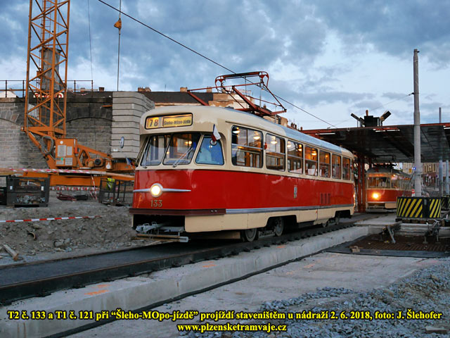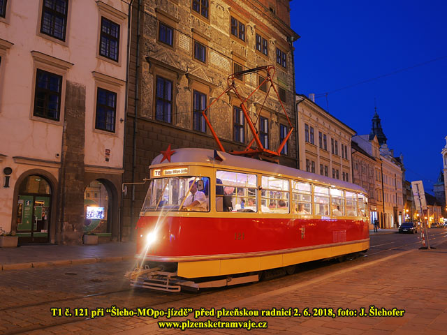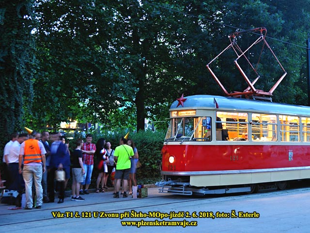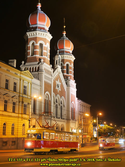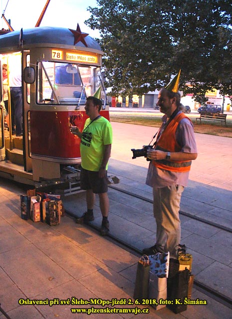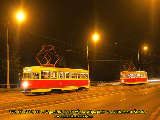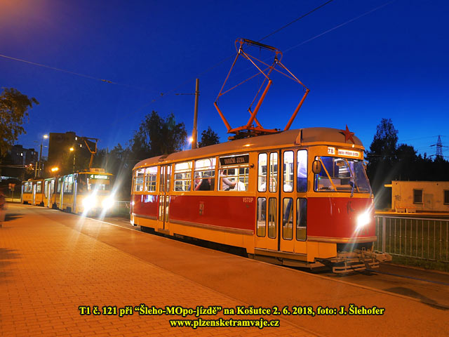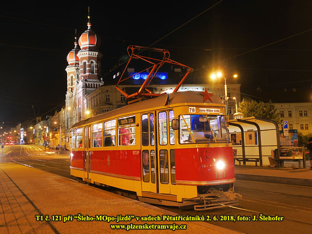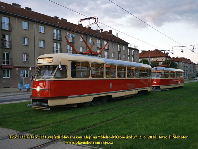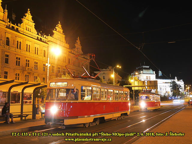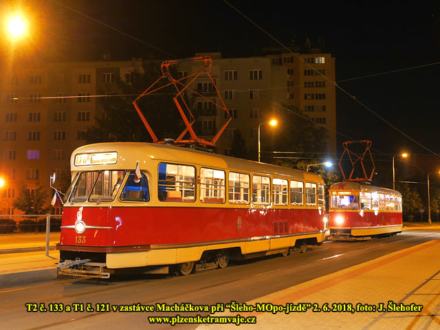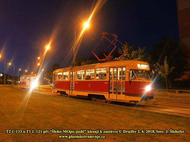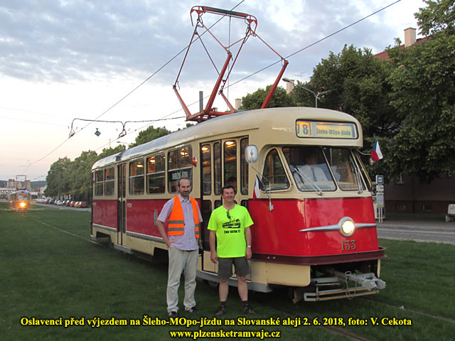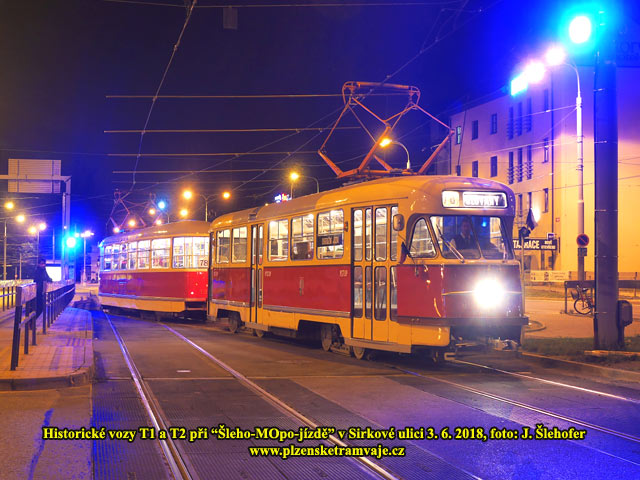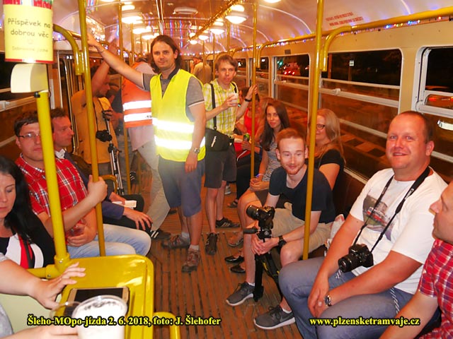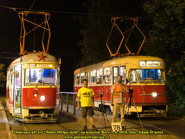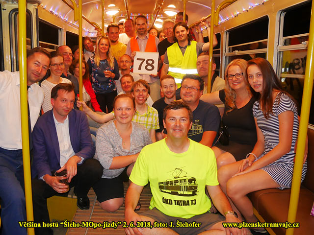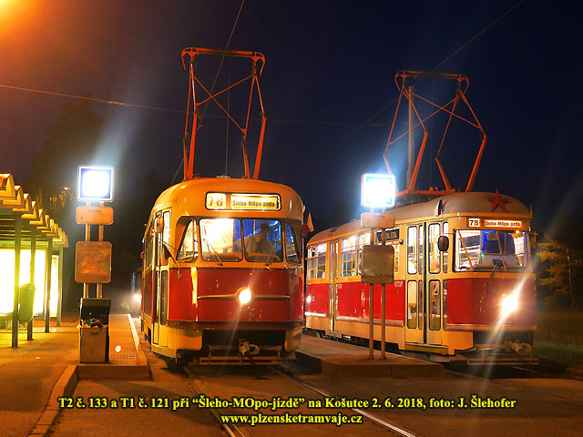 Vozy označené linkou 78 a cedulemi "Šleho-MOpo-jízda" vyjely tak na večerní jízdu v sobotu 2. 6. 2018. První jel vůz T2 č. 133,
