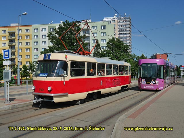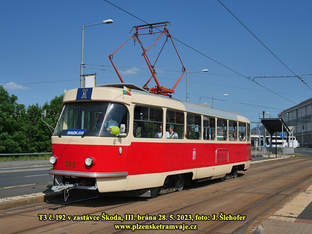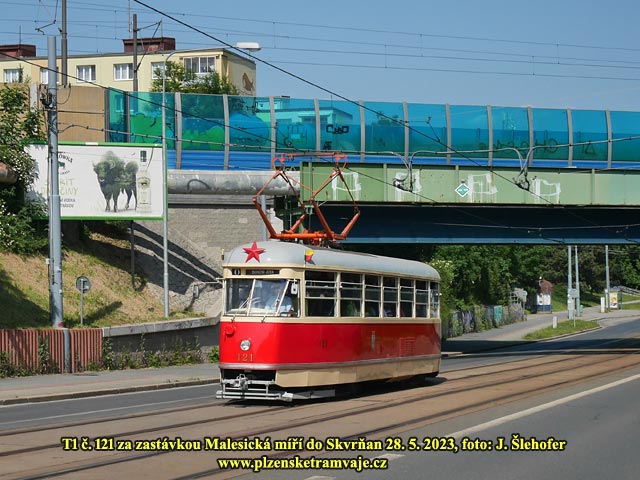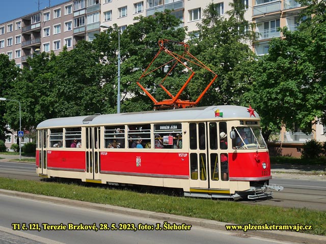 historický vůz T1 č. 121. Dále byla dnes na zvláštní jízdy z obratiště U Zvonu vypravena další historická tramvaj a to T3 č. 192 a