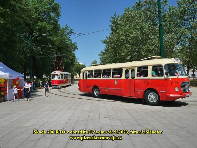 historické autobusy Škoda 706 RTO č. 51 a Karosa ŠM 11 č. 135. U Zvonu stály také stánky PMDP s doprovodným programem a reklamními předměty. Drobné dárky dostali návštěvníci zdarma.