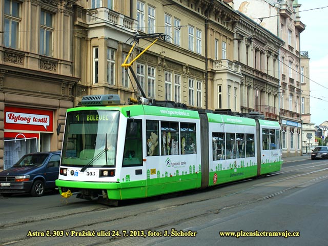 Od 24. 7. 2013 se v provozu objevuje Astra č. 303 se světle zeleným polepem propagujícím Hypoteční banku. Kombinací barevného provedení připomíná nedávno testovaný miskolcký vůz 26T.
