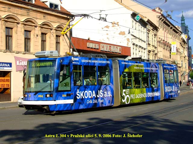 Oranžovou reklamu firmy ČEZDATA nahradila v září 2006 na voze č. 304 nová modrá propagující Škodu - Jaderné strojírenství. Tato firma sídlící na Orlíku,