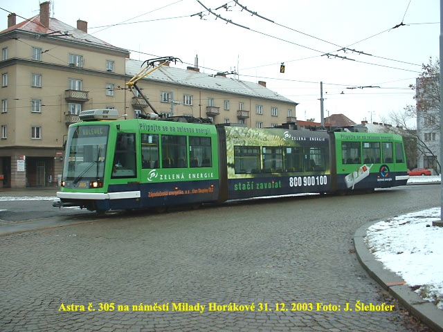 vůz - Astra č. 305. Současně byly upraveny i polepy vozů 306 a 307.