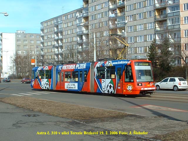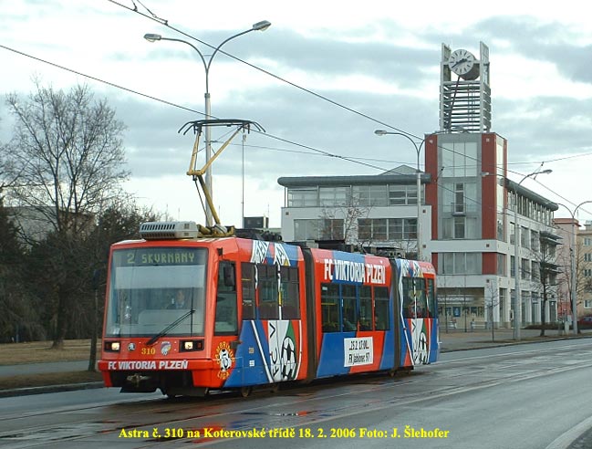 V sobotu 18. 2. 2006 se na lince č. 2 objevila v provozu Astra č. 310 s reklamou FC Viktoria Plzeň. Po odstavení vozu č. 266, na kterém byla podobná, avšak mnohem jednodušší reklama, je tak tento vůz důstojnou náhradou.