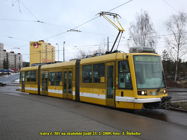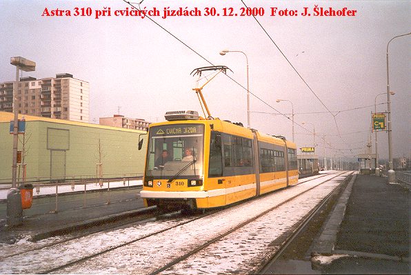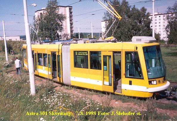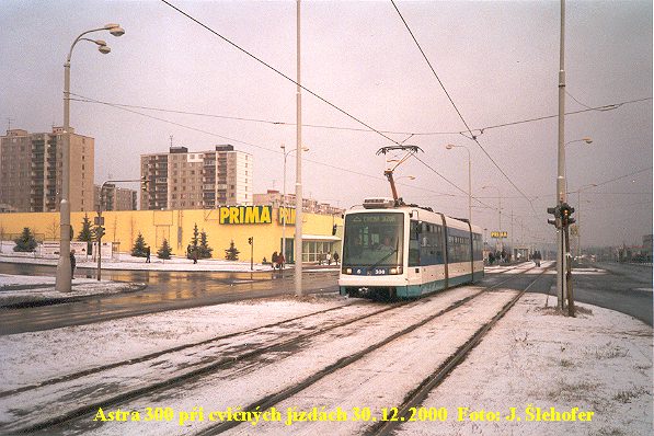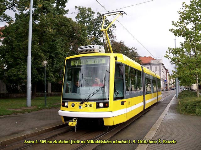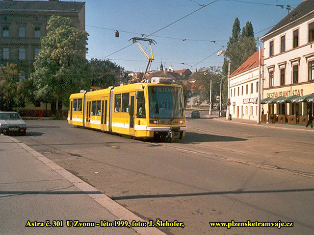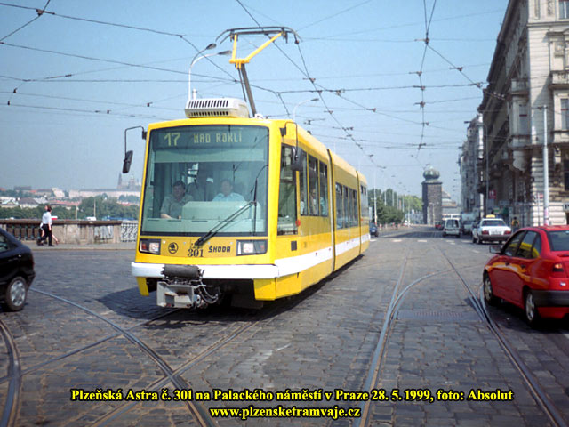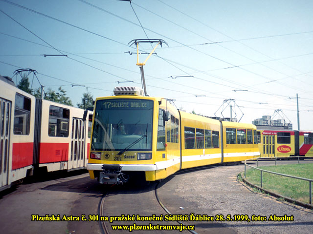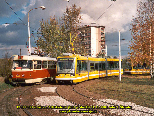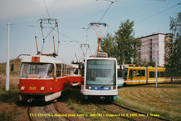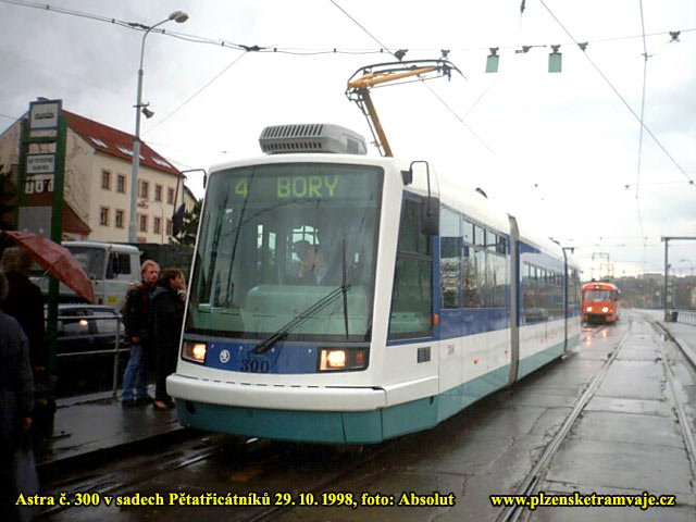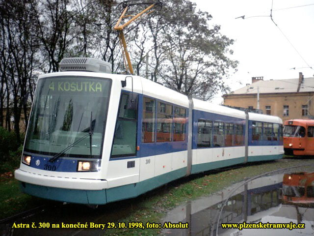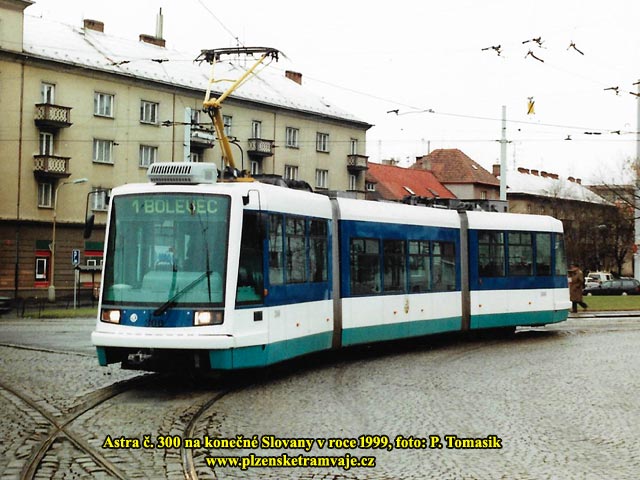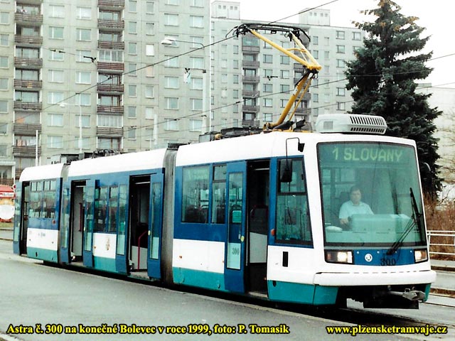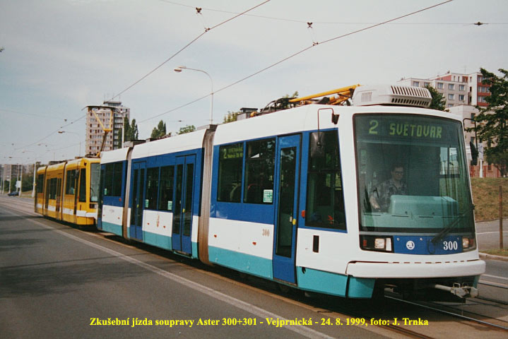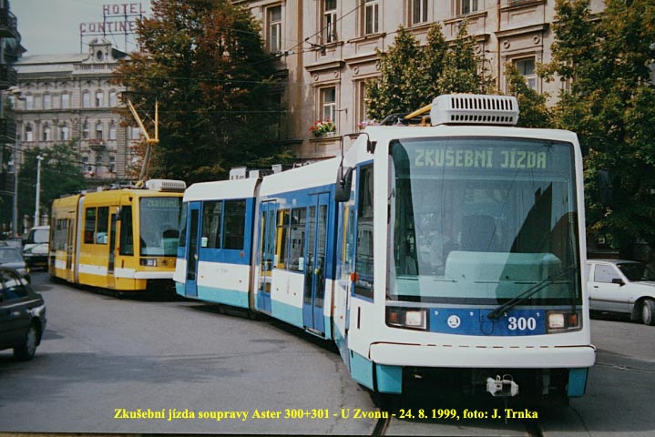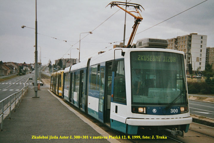 V létě 1999 vyjela zkušebně do ulic města bez cestujících souprava Aster 300+301. Souprava jezdila v Plzni