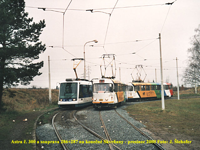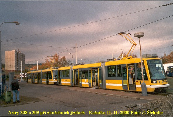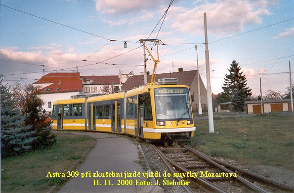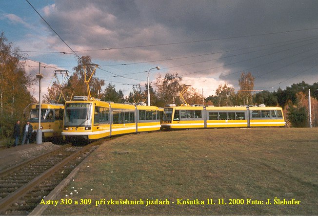 Na dalších snímcích pořízených při první zkušební jízdě 11. 11. 2000 jsou nové vozy zachyceny v obratištích Skvrňany, Mozartova a Košutka.