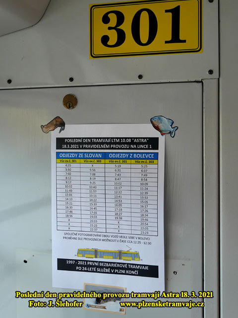 Nakonec se posledním dnem pravidelného provozu tramvají Astra v Plzni stává čtvrtek 18. 3. 2021. Bohužel v aktuální covidové epidemiologické situaci nebylo žádoucí pořádat žádné