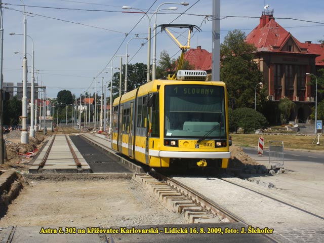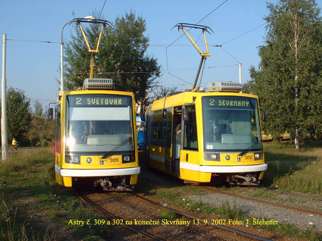 Astry. Další nízkopodlažní vozy (zpravidla K3R-NT či KT8D5-RN2P) jezdí na libovolných negarantovaných