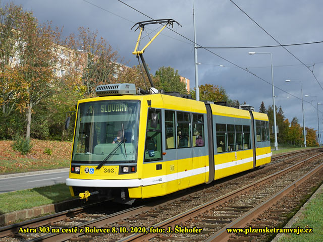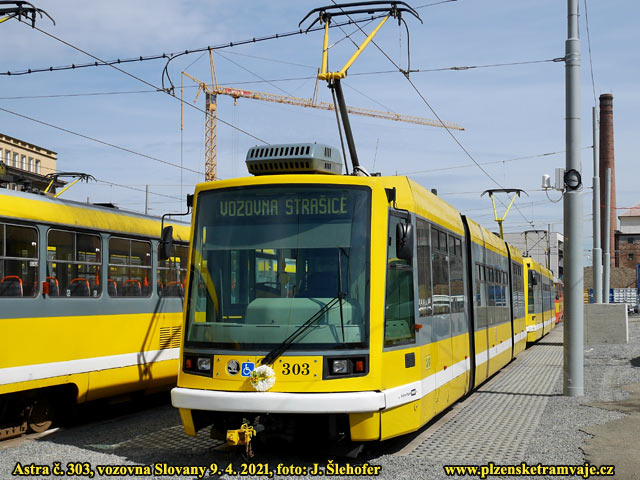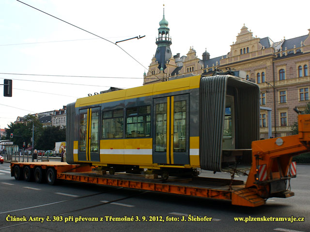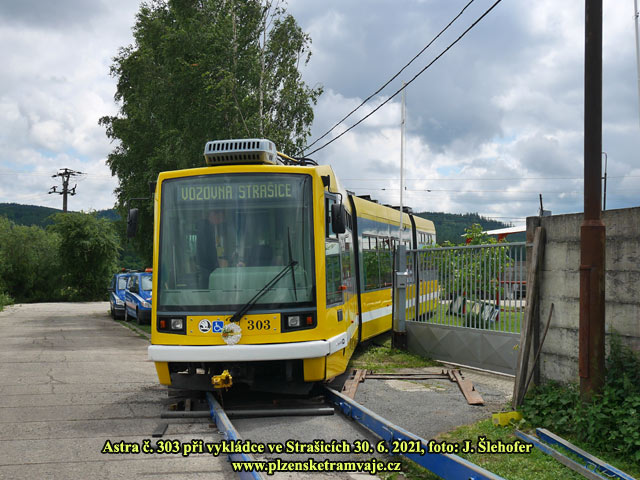 Astra č. 303 byla naložena 30. 6. 2021 a přepravcem APB převezena do Strašic. V Plzni tak zůstává od té chvíle pouze historický vůz č. 301.