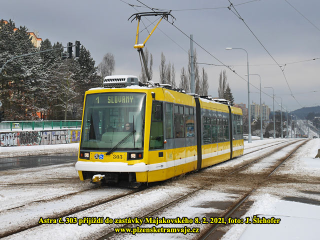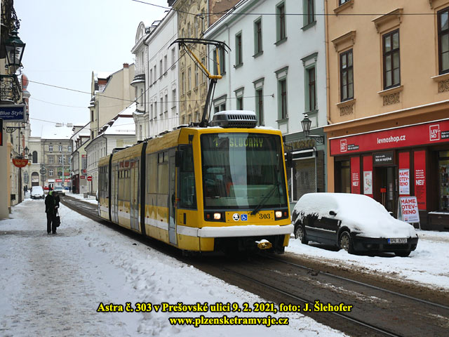 který by měl zůstat zachován jako historický. Vůz 303 tak v provozu zažívá v lednu a únoru 2021 vydatnou sněhovou nadílku.