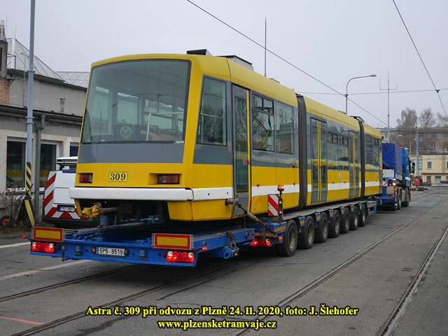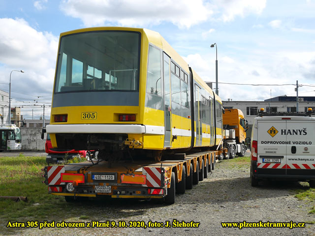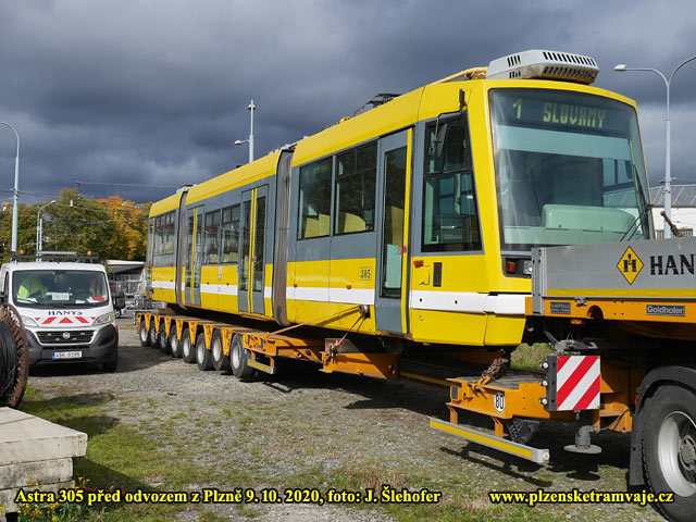 Astra č. 305 je 9. 10. 2020 naložena na tahač a v nočních hodinách pak Plzeň opouští směrem k soukromému majiteli.