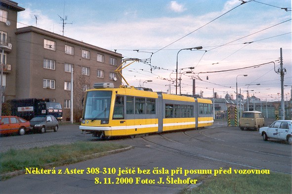 Na fotografii vlevo je zachycena některá z nových Aster ještě bez čísla, kdy při posunu musela na chvíli opustit vozovnu.