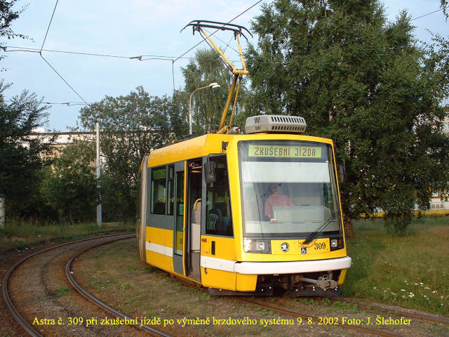 Astra č. 309 byla první, která dostala nový hydraulický brzdový systém DAKO s řídící jednotkou firmy DI-ELCOM.
