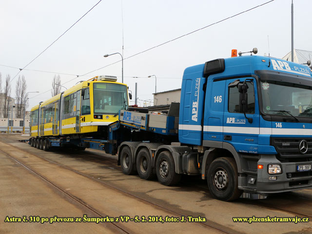 Astra č. 310 byla odtud přivezena 5. 2. 2014 a ještě toto odpoledne se objevila ve měste na první zkušební jízdě.