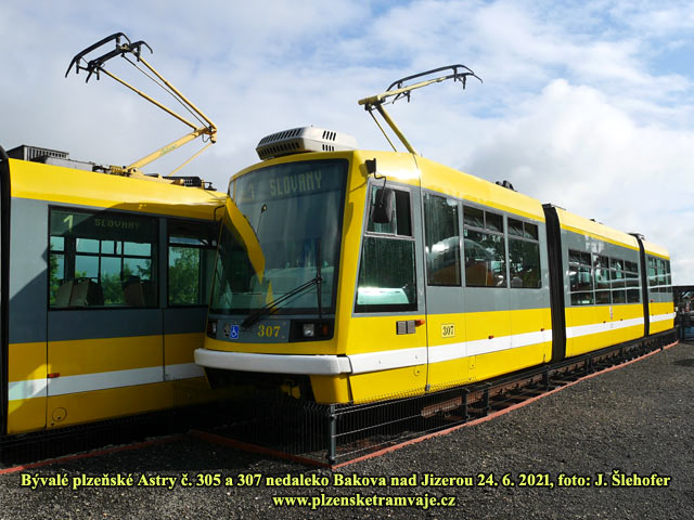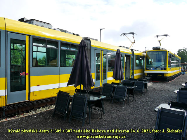 Také některé další tramvaje Astra můžeme vidět i po vyřazení. Vozy č. 305 a 307 stojí na dálničním odpočívadle nedaleko Bakova nad Jizerou, kde dělají společnost známému letadlu.