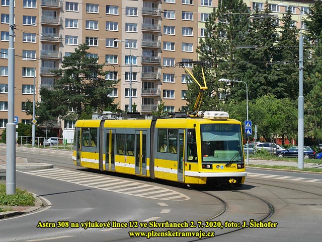 Astra č. 308 byla odstavena z provozu 2. 11. 2020 po předchozích stížnostech na hlučné vrzání kloubu a vůz již nebyl opravován.