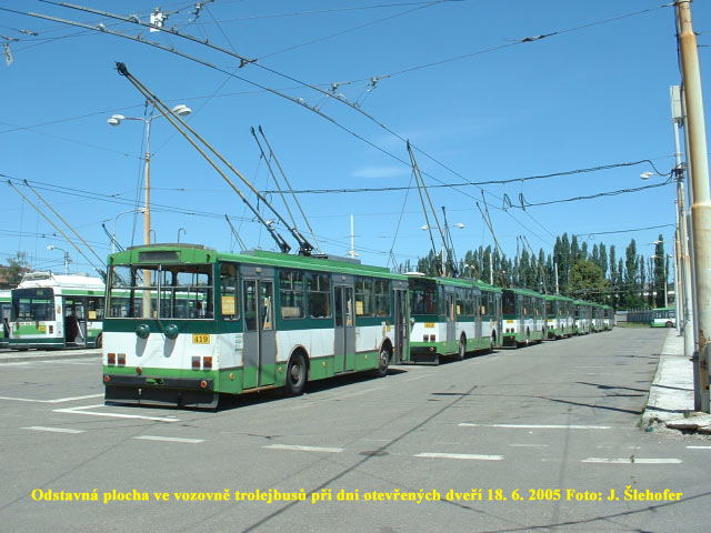 V Cukrovarské ulici si bylo možné prohlédnout v horní trolejbusové hale jednotlivé typy vozů, podívat se na myčku vozů