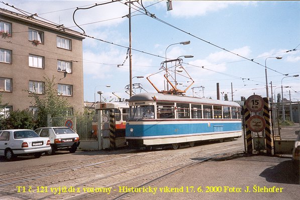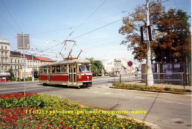 Palackého a zpět. Její přes padesát let mladší kolegyně T1 ev. č. 121 měla trochu delší