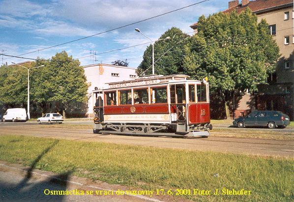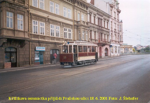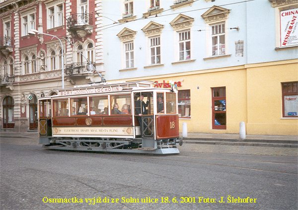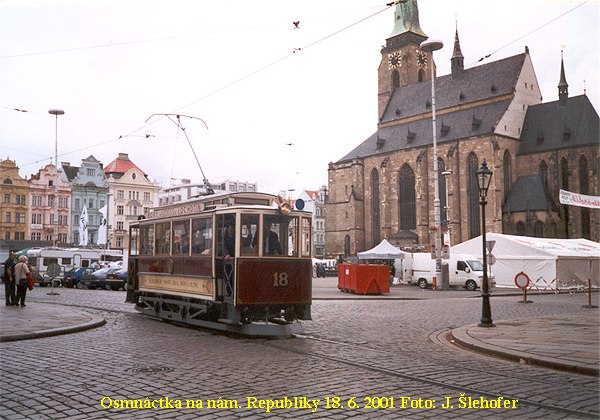 Letos se konal Historický víkend 16. a 17. června 2001. Na náměstí byly k vidění opět různé divadelní scény a ukázky řemesel, v bývalé mlýnské strouze se konaly šermířské zápasy, večer šel průvod strašidel a během dne také vyjely obě historické tramvaje. Nástupní stanice byla opět na smyčce U Zvonu. Křižíkova osmnáctka jezdila tradičně na svém obvyklém kolečku. Na první fotografii přijíždí Pražskou ulicí a další pochází již z kolečka.