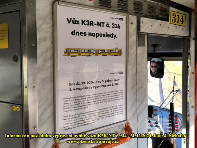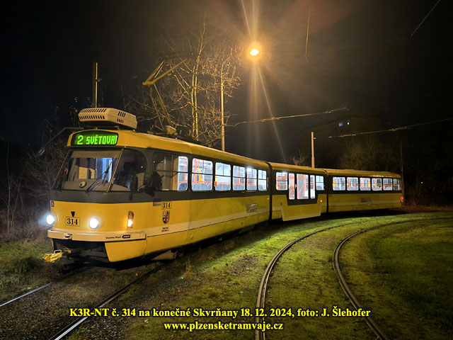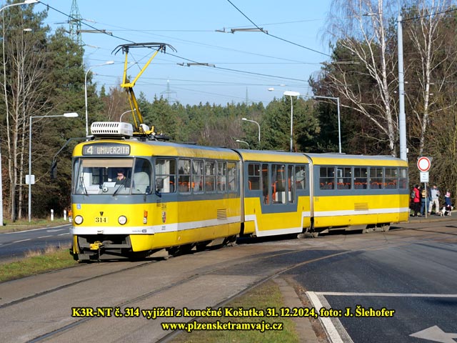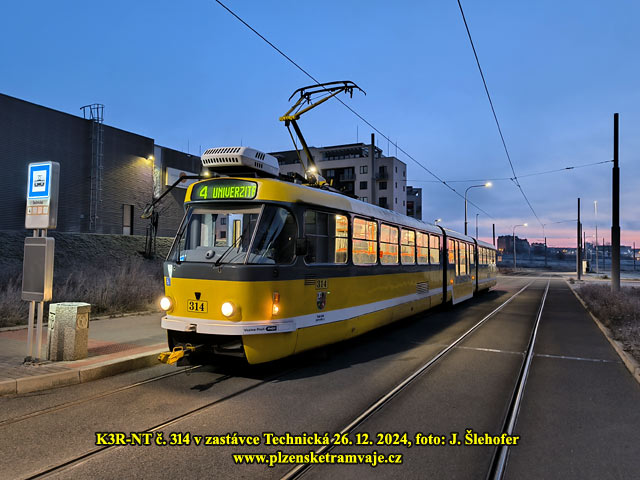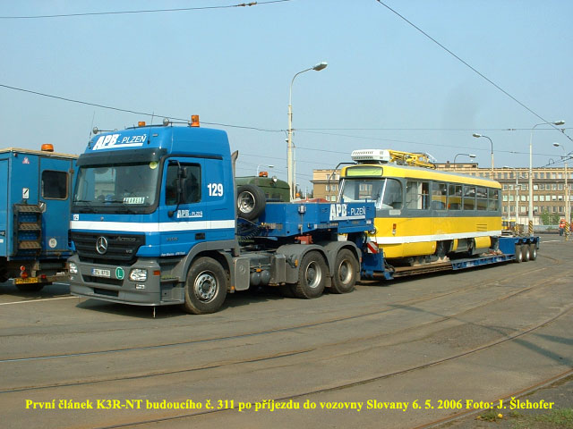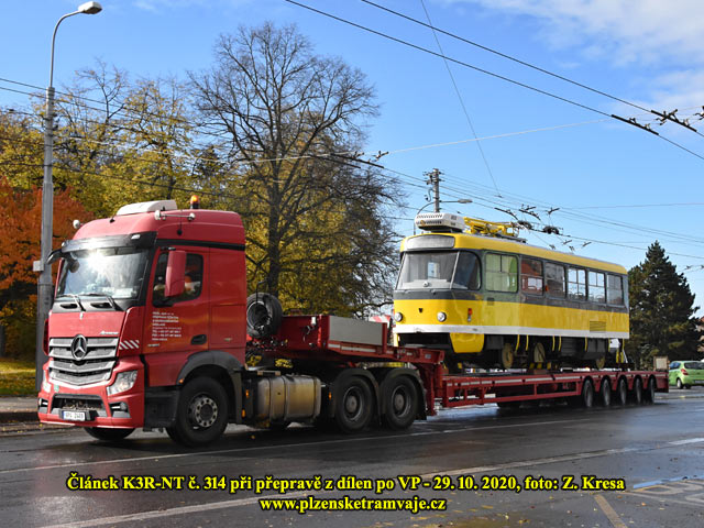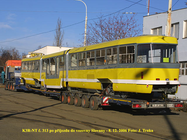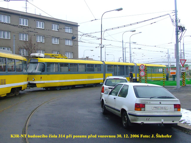 Čtvrtý a zatím poslední vůz K3R-NT budoucího čísla 314 dorazil do Plzně ve večerních hodinách dne 29. 12. 2006. Skládán z návěsu