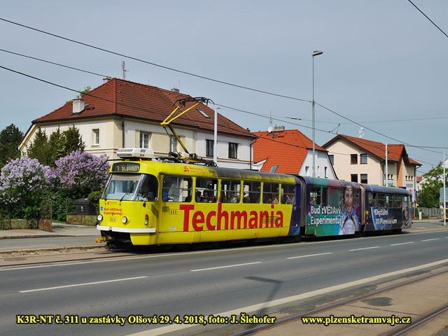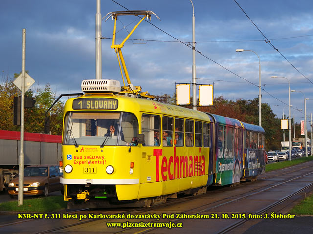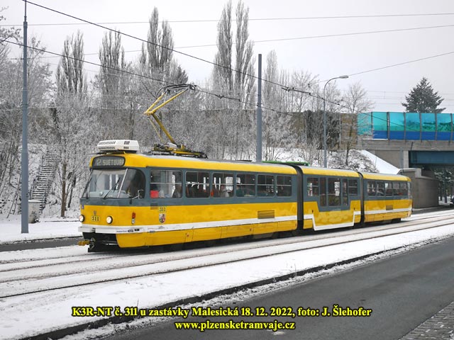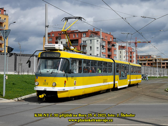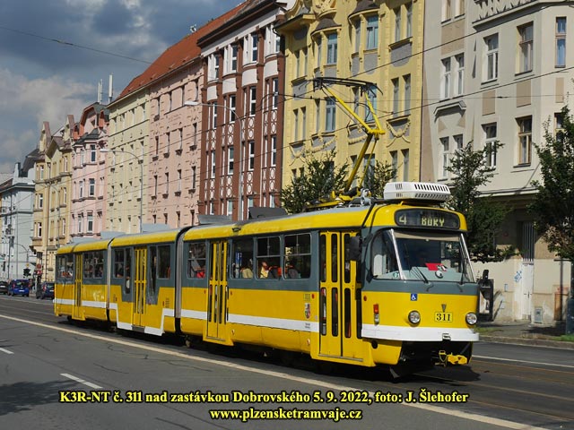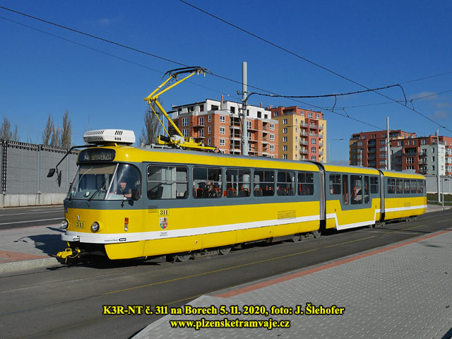 K3R-NT č. 311 po velké prohlídce vyjíždí 11. 9. 2020 na výlukový provoz linek 1 a 2 od Zvonu střídavě na Slovany a Světovar. Následně se pak samozřejmě objevuje i jinde, tedy obvykle na linkách č. 2 a 4.